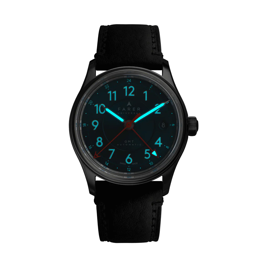 Automatic GMT dual time watch with date, sea green dial and Granolo leather strap.