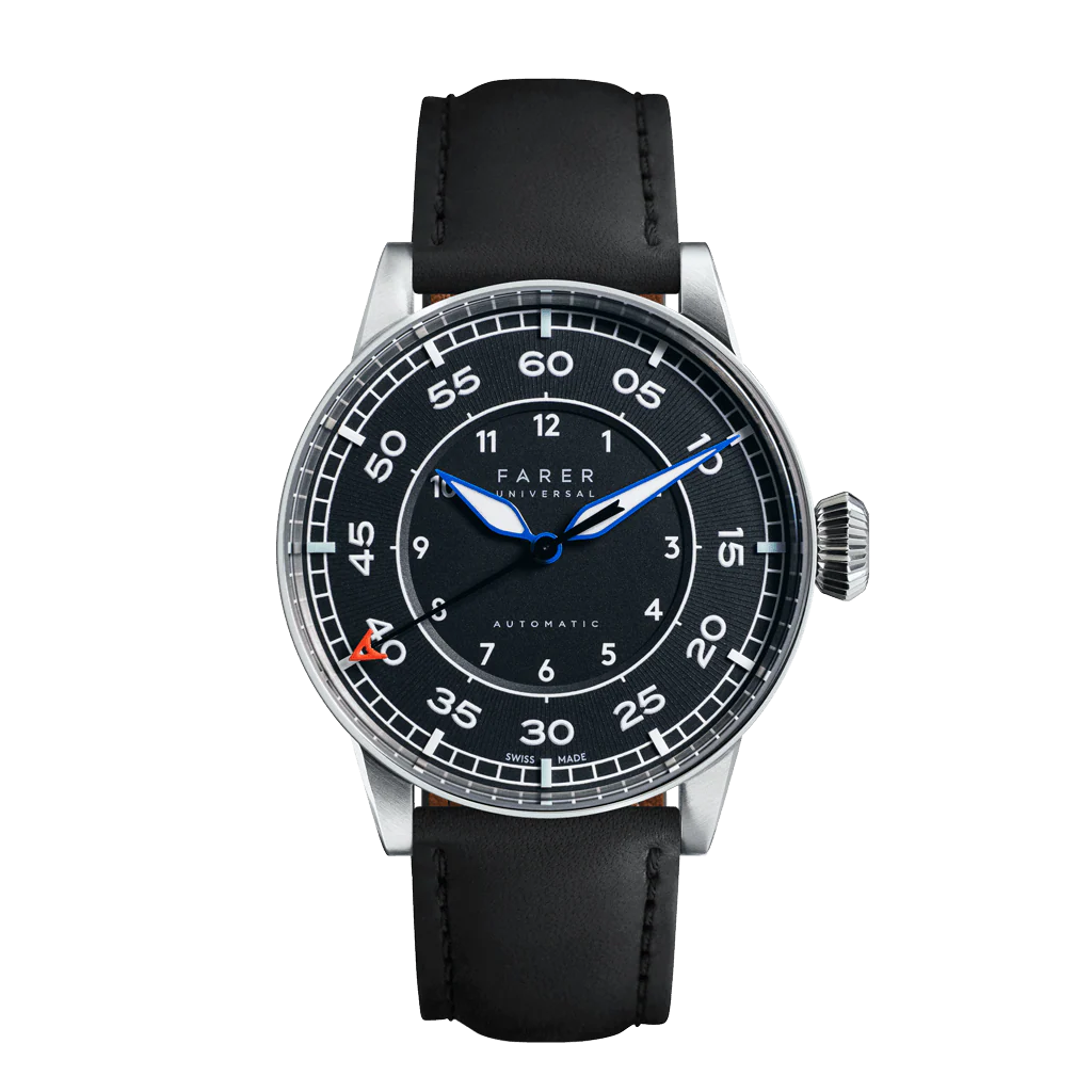 Nearly new anti-magnetic Pilot automatic watch with matte black outer ridged dial and leather strap.